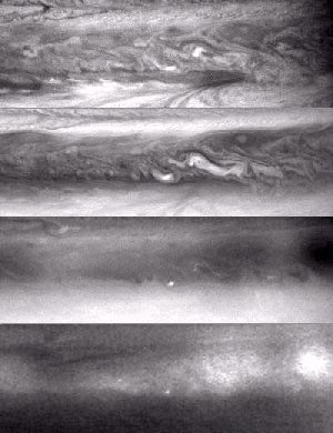 видны бурные завихрения. На нижнем снимке представлены 4 фотографии