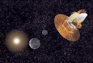 Американский исследовательский спутник MAP (Microwave Anisotropy Probe) отправился в полет 30 июня этого года. К месту своего назначения он летел три месяца. Сейчас он находится во второй точке Лагранжа на прямой, соединяющей Солнце и Землю, на расстоянии 1,5 миллионов километров от Земли. В этой точке силы притяжения, действующие на MAP со стороны Земли и Солнца, равны. Здесь он займется исследованием излучения, испущенного в первые 400 тысяч лет после Большого Взрыва, в результате которого, как предполагается, образовалась наша Вселенная. Так как Земля будет все время загораживать аппаратуру зонда от Солнца, то наблюдения он сможет вести круглосуточно.