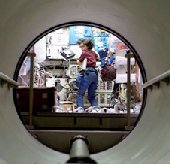 Сейчас "шаттл" Columbia находится на околоземной орбите, а на его борту в специальном лабораторном модуле Spacehab астронавты круглосуточно в две смены проводят эксперименты, для которых нужна невесомость. За время 16 дней полета им предстоит выполнить более 80 экспериментов. На снимке внизу показан вид на интерьер модуля Spacehab через туннель, соединяющий модуль и кабину экипажа "шаттла".