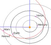 Выяснилось также, что за прошедшие 66 лет Гермес еще 4 раза приближался к Земле - в 1942, 1954, 1974 и 1986 г., но оставался незамеченным. По расчетам, он пересекает орбиту Земли дважды в течение 777 дней.
