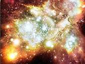 В результате широкомасштабных исследований нескольких далеких галактических скоплений, проведенных с помощью рентгеновских, оптических и инфракрасных телескопов (наземных и космических), астрономы обнаружили огромное звездное скопление, которое является самым большим, самым ярким и самым горячим из всех известных районов формирования новых звезд.
