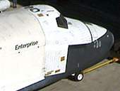 В 1985 году NASA отправило Enterprise в Национальный аэрокосмический музей Смитсониевского Института, и он в течение 18 лет тихо стоял в дальнем ангаре международного аэропорта им. Даллеса близ Вашингтона. После катастрофы "шаттла" Columbia про Enterprise вспомнили и сняли панели с передних кромок его крыльев, чтобы провести испытания с моделированием ударов кусков обледенелой теплоизолирующей пены.