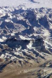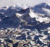 Это фрагменты фотографии, сделанной нынешним экипажем МКС в январе этого года. Это вид на Гималаи с юга со стороны Тибетского плато, снятый с высоты 360 км. В кадр попали самые высокие горы мира, восьмитысячники, в том числе Эверест. Вообще-то, при первом взгляде на эти снимки создается впечатление, что они были сделаны с борта самолета. Но если учесть, что обычные самолеты летают на высоте 9-10 тыс. метров над уровнем моря, а высота Эвереста составляет 8848 м, а Макалу - 8462 м, то станет ясно, что с самолета такого снимка не получилось бы.