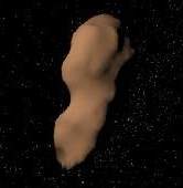 По подсчетам астрономов, 29 сентября этого года астероид Toutatis сделает свой самый близкий за время наблюдений пролет мимо Земли - на расстоянии около 1,6 млн км, что вчетверо дальше, чем до Луны. Это довольно крупный астероид, если исходить из последствий, к которым могло бы привести его столкновение с Землей. По данным радарных исследований его размеры составляют 4,6 на 2,4 км. Он имеет довольно замысловатую форму. Вот два его изображения с разных сторон, полученные с помощью радара: