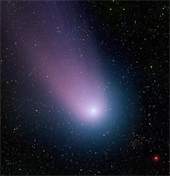 Это снимок кометы C/2001 Q4 (NEAT), сделанный 7 мая 0,9-метровым телескопом WIYN Национальной обсерватории Kitt Peak в Аризоне. Для получения цветного изображения были использованы три разных светофильтра. Поле зрения камеры составляло 1 градус, это вдвое больше углового размера Луны. Тем не менее, в кадр попали только кома кометы и "ближняя" часть ее хвоста. В правом нижнем углу снимка видна яркая красная звезда.
