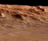 Это изображения фрагментов северного склона гигантской марсианской впадины Hellas. Эти снимки были сделаны не американскими марсоходами с поверхности Марса. Они были получены на основе фотографий, сделанных стереокамерой европейского орбитального зонда Mars Express с разрешением 18,3 м на пиксел.