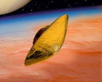 Исследовательский зонд Cassini сейчас находится на орбите Сатурна. Вместе с ним по этой орбите летит и минизонд Huygens, который пока прикреплен к Cassini. В середине декабря должно состояться их отделение друг от друга, и Huygens начнет спуск на поверхность Титана, самого большого спутника Сатурна. Спускаться он будет почти месяц: по расчетам, посадка должна состояться 14 января 2005 г.