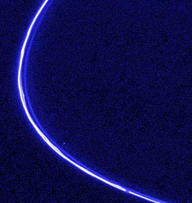 Кольца у Сатурна были обнаружены еще в 1610 году, и сделал это Галилео Галилей. Тонкое кольцо F было открыто гораздо позже - в 1979 г., а его относительно подробные снимки были получены в 1980 г., их прислал американский исследовательский зонд Voyager 1, направлявшийся к внешней границе солнечной системы. На этих снимках астрономы увидели, что кольцо F имеет неоднородную структуру, в нем есть сгустки, более плотные "нити" и разные "неровности". Еще более подробные снимки кольца F были получены с помощью зонда Cassini, который сейчас работает на орбите Сатурна.