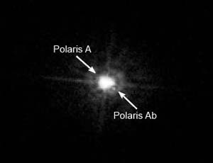 Полярная звезда, на самом деле, представляет собой тройную звёздную систему, в центре которой располагается сверхгигант, в 2000 раз превосходящий по яркости наше Солнце (Полярная А). На приличном удалении от неё располагается Полярная B, и поэтому разглядеть её в телескопы нетрудно даже с поверхности Земли. Однако карликовый компаньон центральной звезды - Полярная Ab - располагается к гиганту настолько близко, что сфотографировать его удалось лишь "Хабблу" и только после перенастройки оборудования.