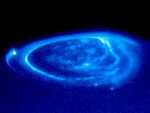 Ио – самый вулканически активный объект в Солнечной системе. Выбрасываемые вулканами заряженные частицы улавливаются сильным магнитным полем Юпитера и образуют вокруг него вращающийся плазменный тор (бублик). Ио оказывается препятствием на пути потока плазмы. В результате столкновения заряженные частицы попадают в атмосферу Юпитера, за счет чего в полярных сияниях возникают яркие пятна - "следы Ио".